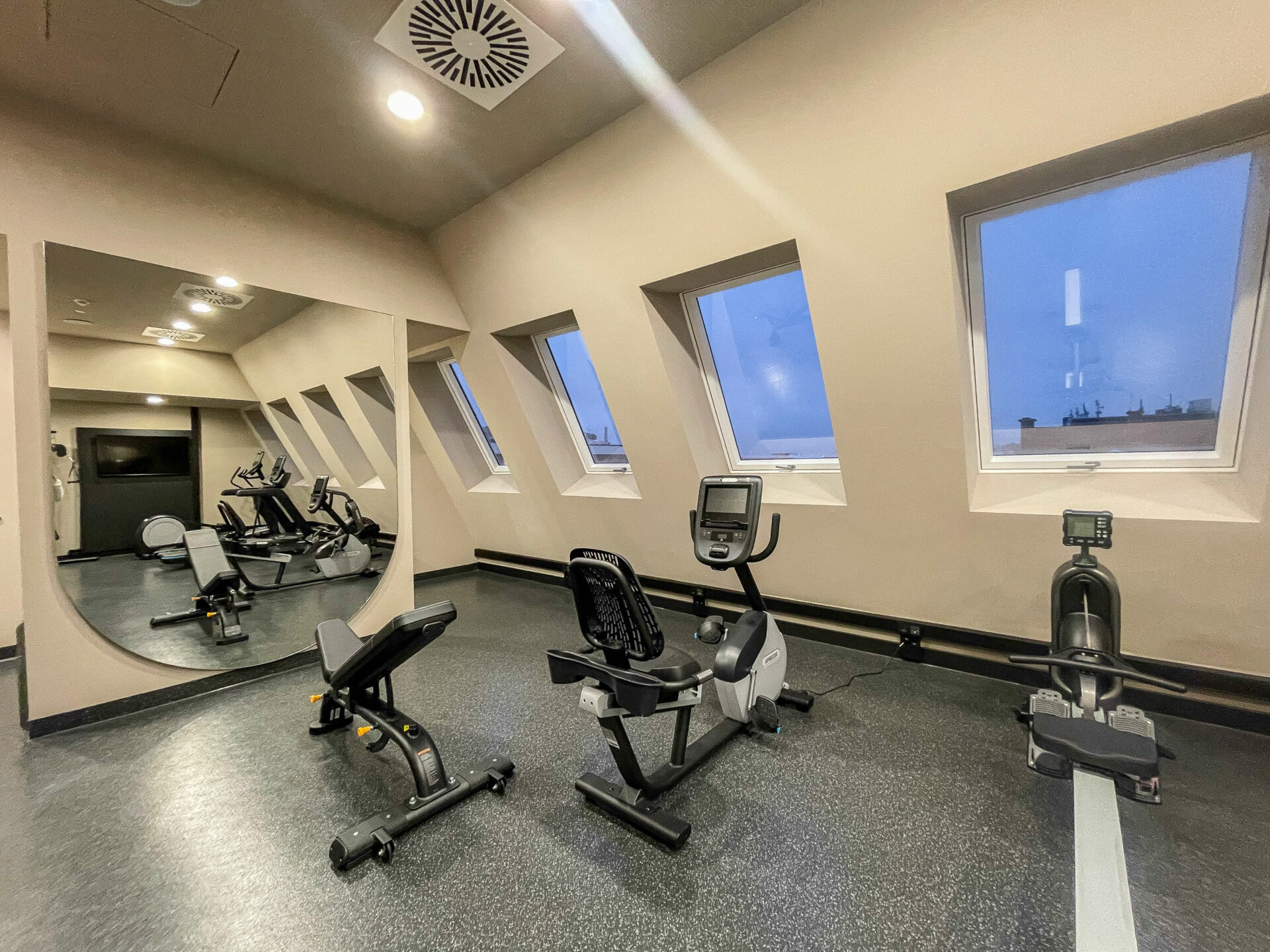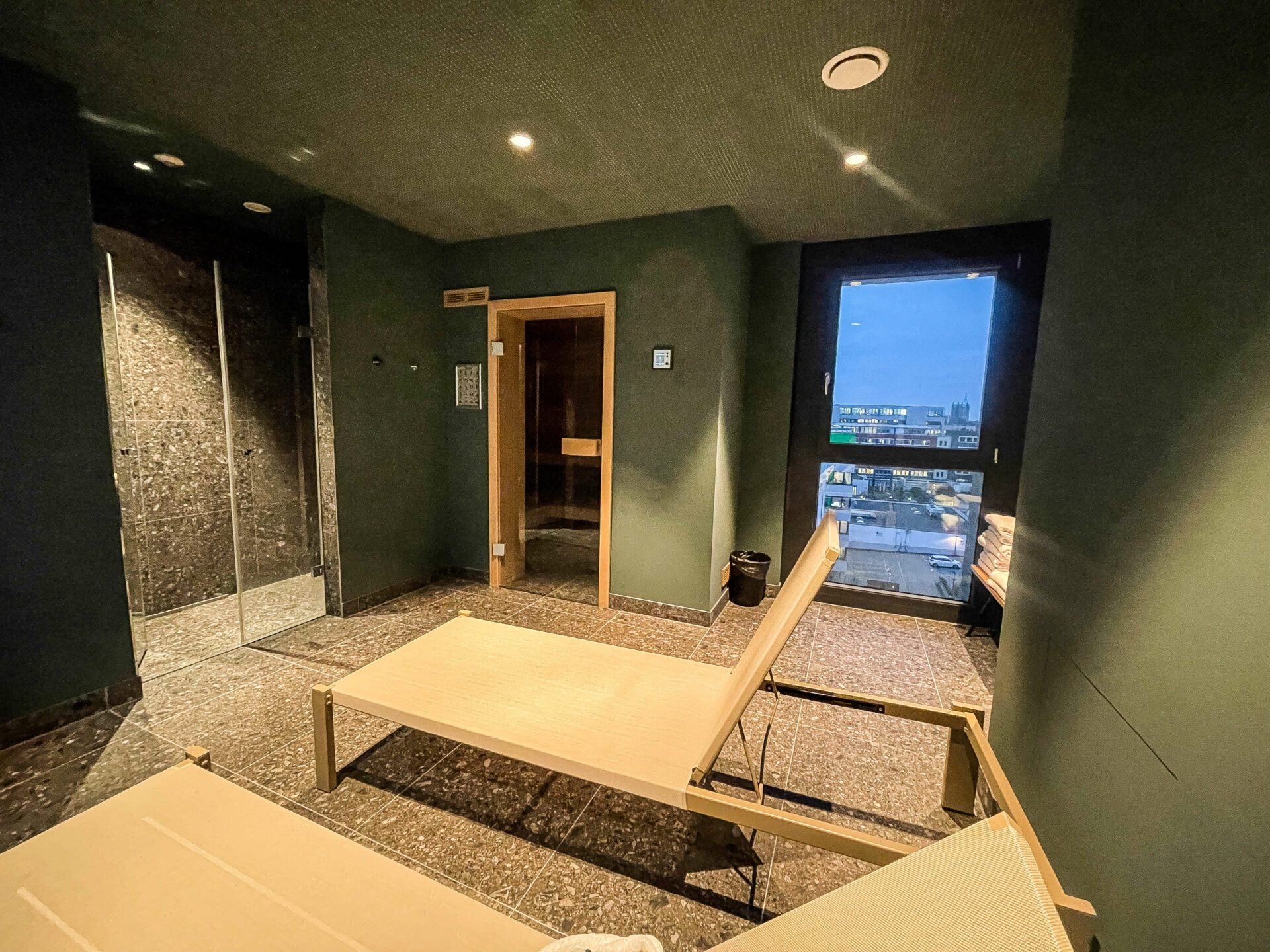 Speziell im modernen, hell gestalteten Tagungsbereich und im Innenhof lässt sich die Architektur der Häuser schön erkennen. Ein Teil ist ein kompletter Neubau, hier sind die Zimmer mit bodentiefen Fenstern ausgestattet. Der andere Teil integriert einen Altbau mit Backsteinen. Die Fassade ist denkmalgeschützt und die Zimmer haben höhere Decken. Beide Teile sind miteinander fließend verbunden. Nach dem Businessmeeting oder Sightseeing-Tag in der Stadt kann im obersten Stockwerk über den Dächern von Münstern im Fitnessraum trainiert oder in der kleinen Sauna entspannt werden. In wärmeren Monaten kann der Innenhof ebenfalls genutzt werden. Die Lobby ist einladend und freundlich, mit gemütlichen Sitzbereichen und warmer Atmosphäre.