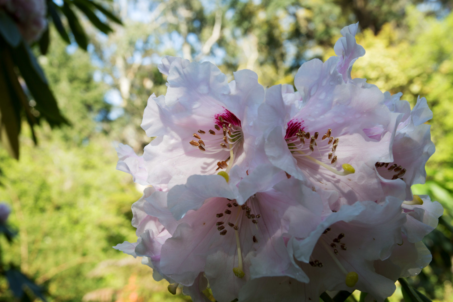 Beim lang gezogenen Palmenweg stolpern Naturfreunde unweigerlich über eine Sammlung von Scheinulmen und Scheinbuchen. Einer der geheimnisvollsten Plätze im Garten ist der Eukalyptuswald. An manchen Stellen fühlt es sich wie mitten im Dschungel an, während auf der nächsten Lichtung Sonnenstrahlen spektakuläre Muster auf die Erde werfen.