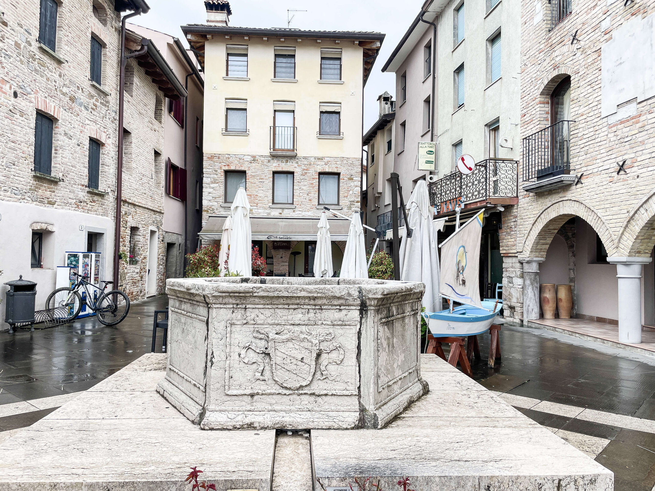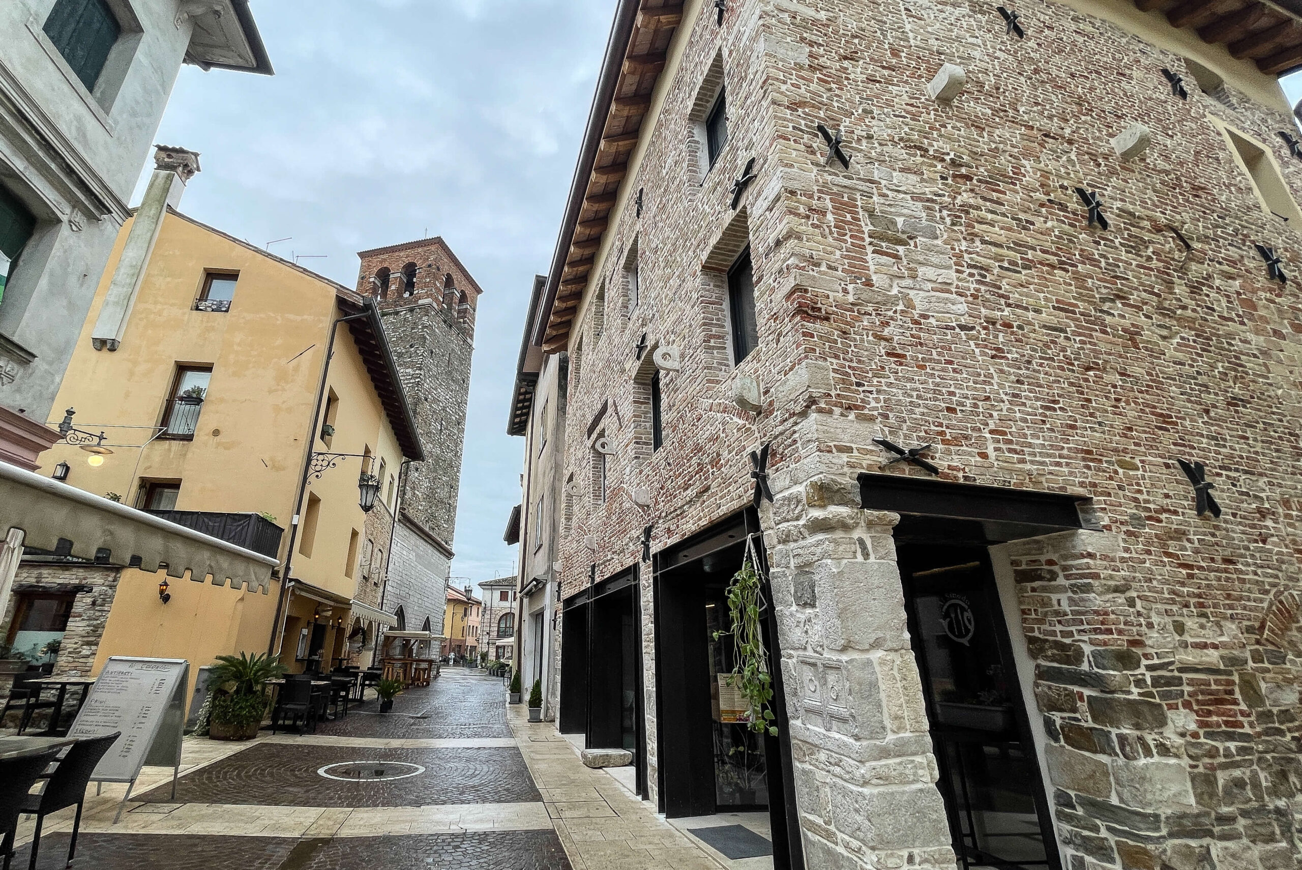 Das Herzstück des Ortes bildet die Piazza Vittorio Emanuele II, dominiert vom imposanten Torre Millenaria, einem über 1000 Jahre alten Turm, der einen weiten Blick über die Lagune ermöglicht.