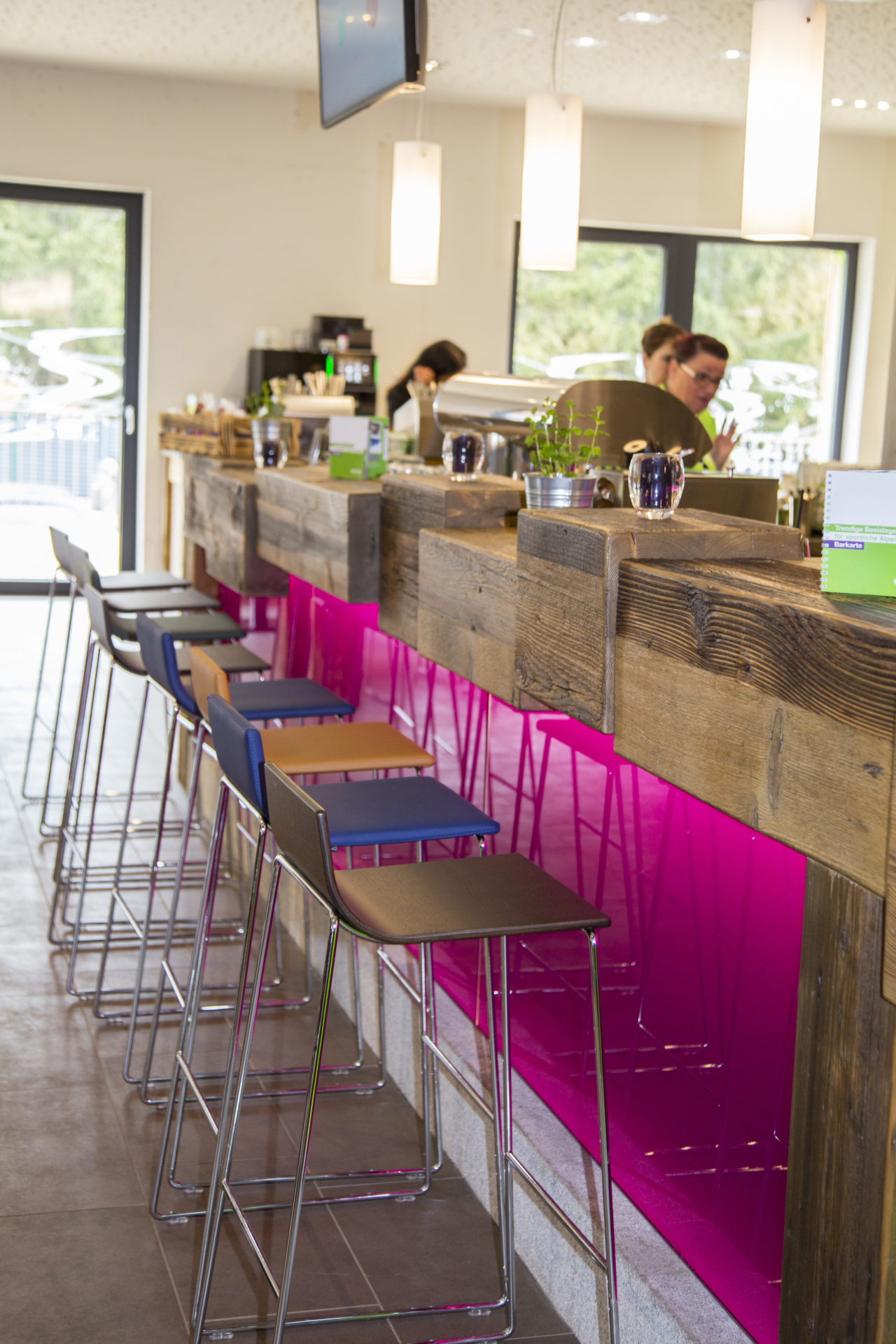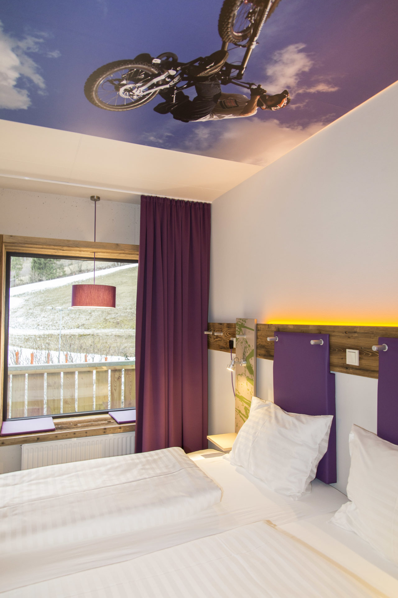 Alles ist das Wesentlichste reduziert. Aber das mit guter Qualität. Die Zimmer haben viele Ablageflächen für die Sportsachen, das Frühstück ist umfangreich mit regionalen Lebensmitteln und an der Snackbar gibt es Kleinigkeiten für zwischendurch. Wer möchte, kann in der Früh selbst seine Eierspeis brutzeln.