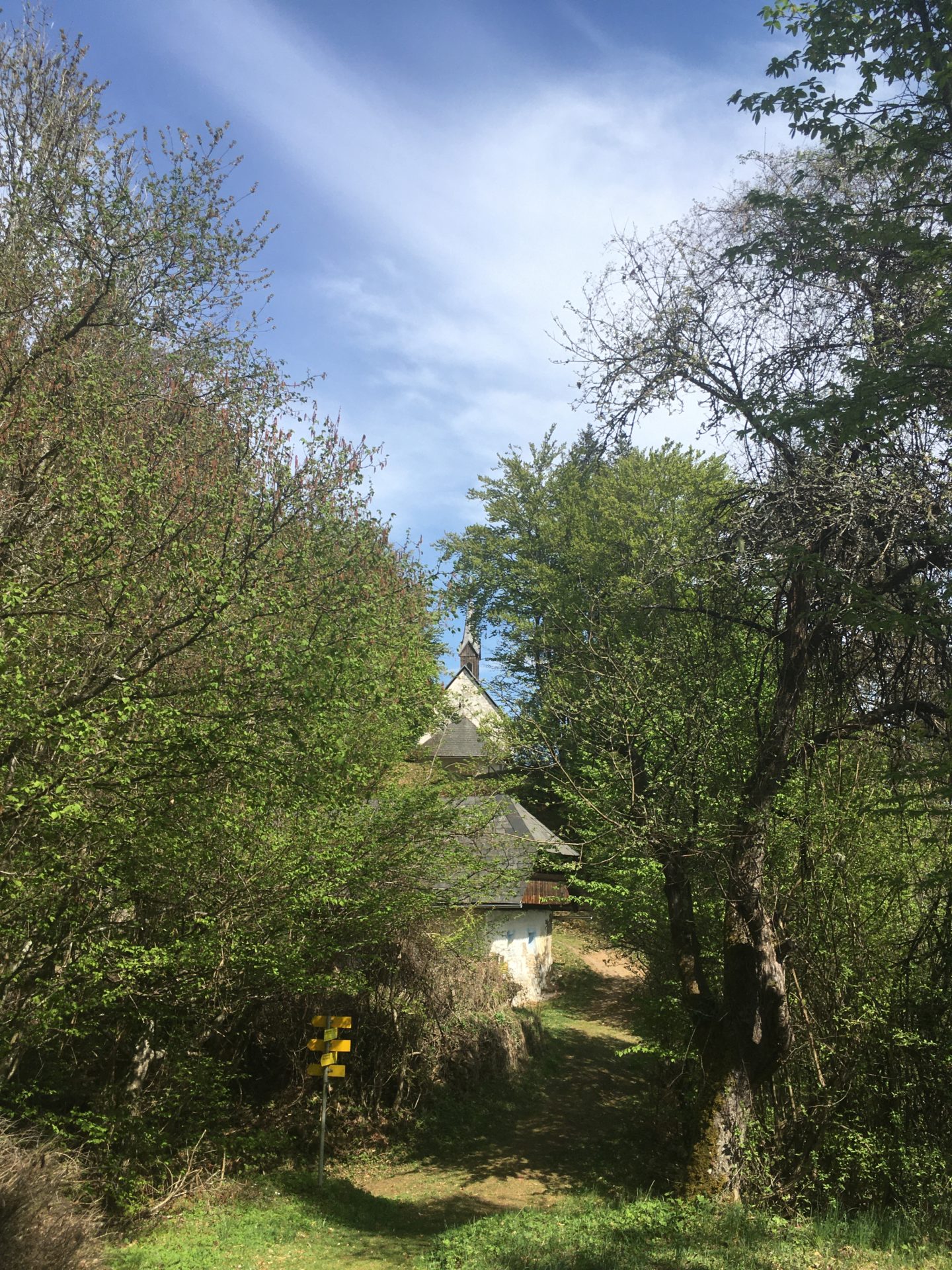 Dort wo einst die Burgkapelle stand, ist heute die Kirche St. Margarethen. Nach der Kirche und Burgruine folgt eine relativ lange Etappe bis zur Kirche St. Anna.