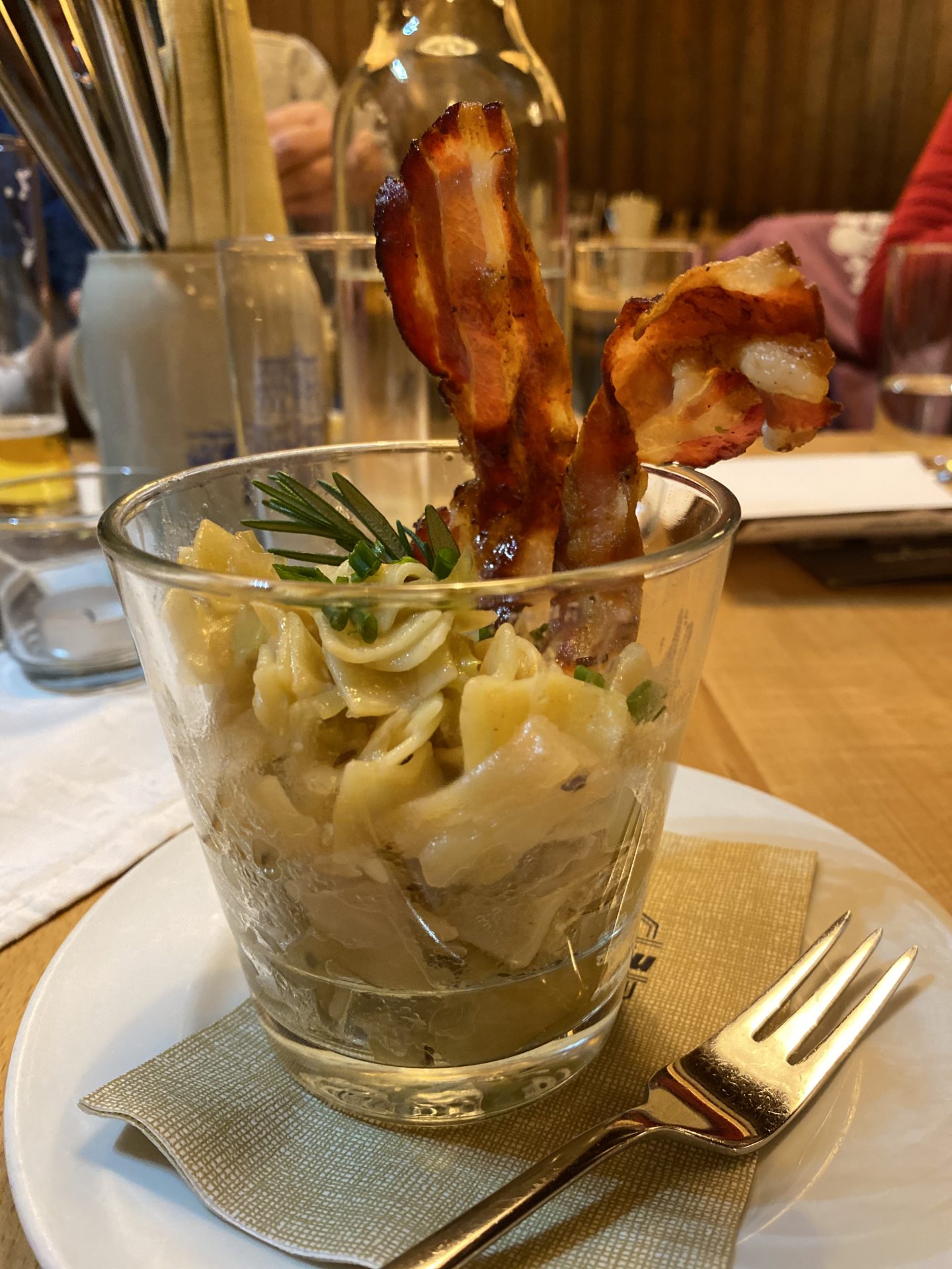 Nächster Stopp: Das Gösserbräu wird von den Grazern mit dem lieblichen Spitznamen die Gösser bezeichnet. 1973 bis 1976 lernte Johann Lafer vor Ort und stattet seitdem dem bodenständigen Brauhaus immer wieder gerne einen Besuch ab. Hier wird die Ursprungsgeschichte des Radlers erzählt: In Deutschland gab es eine beliebte Radtour, an welcher auch das Gasthaus eines Wirtes lag. Dieser bekam regelmäßig Besuch von Radfahrern, die häufig ein Bier als kleine Erfrischung bestellten. Eines schönen Sommertages kamen derart viele Radfahrer vorbei, sodass er die zuletzt eingetroffene Gruppe nicht vollständig mit Bier versorgen konnte. Daraufhin experimentierte er ein wenig, mischte das Bier, welches er noch hatte, mit Apfelsaft und kreierte somit den ersten Radler. Der Rest ist Geschichte.