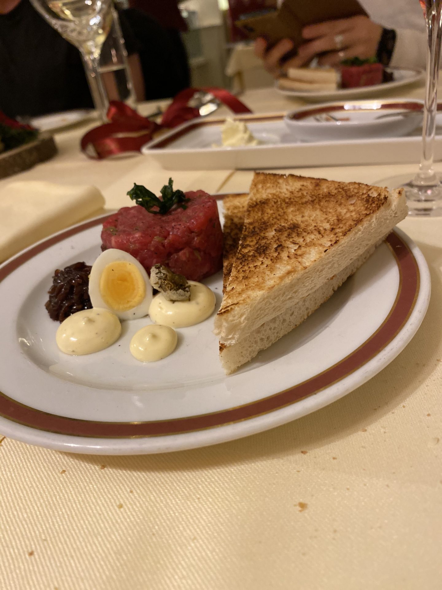 Das Trüffel-Dinner im Café Sacher begeistert allein schon anhand dem liebevoll hergerichteten Tisch. Bereits das Lesen des Menüs verspricht großen Genuss. Das Beef Tartar zur Vorspeise mit Trüffelmayonnaise war ein perfekter Einstieg und der warme Schokoladenkuchen mit Vanille-Parfait und Krokant bewies das Talent des Café Sachers für Süßspeisen.