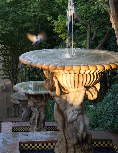 Auf jeder Reise entstehen zahlreiche Fotografien. Und immer ist ein Lieblingsbild dabei. In Barcelona war es ein Springbrunnen im Abendlicht, der einen Vogel lockte…