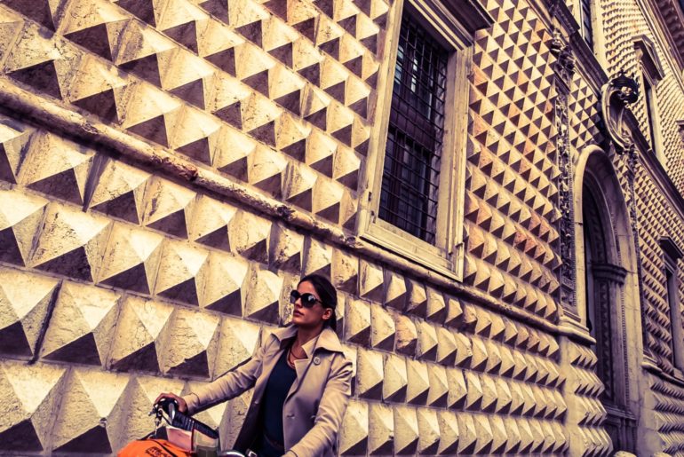 Bleiben wir noch ein wenig bei den d’Este. Der Diamant-Palast wurde zwischen 1492 und 1503 als Residenz für Sigismondo d’Este, dem Lieblingsbruder von Herzog Ercole I d’Este, errichtet. Die Fassade besteht aus über 8.500 weiß-rosa, spitz zugeschliffenen Marmorblöcken und gilt als Meisterwerk des Hofarchitekten Biagio Rossetti. Im Palast befinden sich die umfangreiche Gemäldesammlung der Pinacoteca Nazionale, die Galleria d’Arte Moderna e Contemporanea mit wechselnden Ausstellungen und der großartige Festsaal Salone d’Onore. Corso Ercole I d’Este 21, palazzodiamanti.it