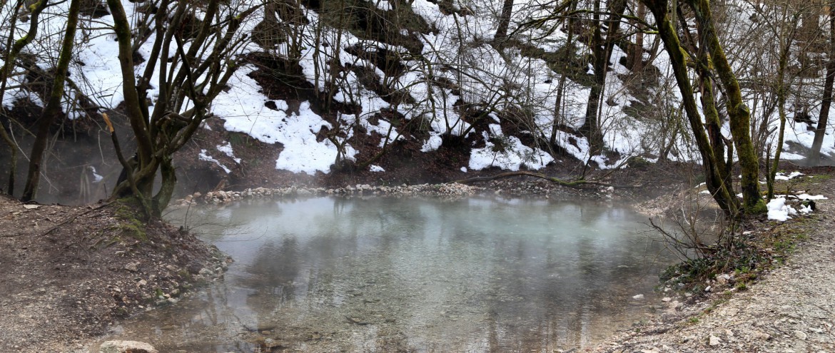 Aktuell lohnt sich die kleine Wanderung zum Maibachl – die Becken quellen über mit heißem Thermalwasser und sorgen für eine märchenhafte Stimmung auf der Lichtung.