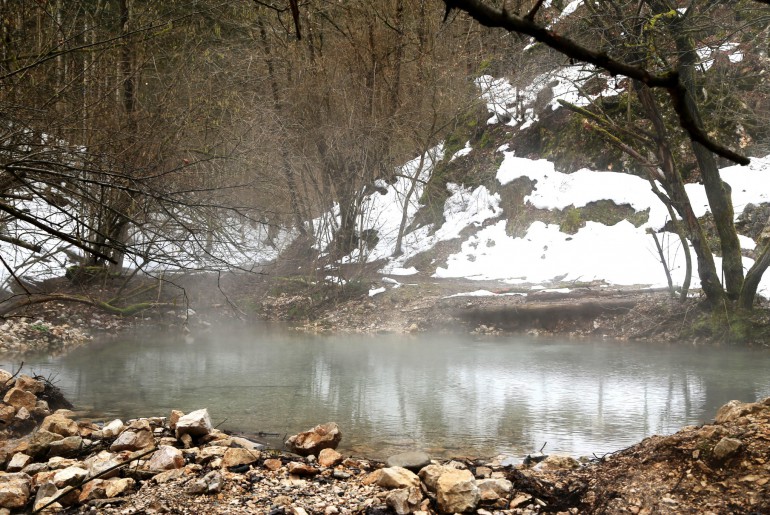 Das Thermalwasser leuchtet an sonnigen Tagen türkisfarben und ist glasklar. Jeder Stein am Grund ist zu erkennen. Durch den Dampf bekommt der Ort eine mystische Atmosphäre. Seit jeher wird der Platz, umgeben von hohen Felsen und alten Bäumen, als Kraftplatz bezeichnet, der den Menschen neue Energie schenkt.