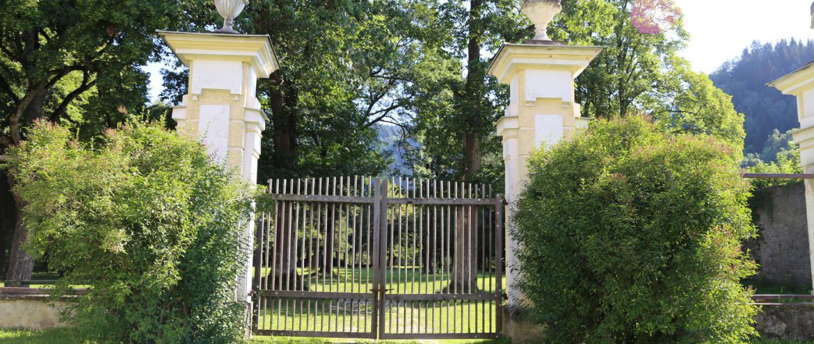 Der französische Garten mit Springbrunnen, Pavillon und Kegelbahn wirkt noch recht verwildert. Die weiße Farbe blättert von der Fassade ab und grünen Fensterläden sind vergilbt. Der bedeutendste klassizistische Bau in Kärnten – das Schloss Pöckstein – hat schon bessere Tage gesehen.