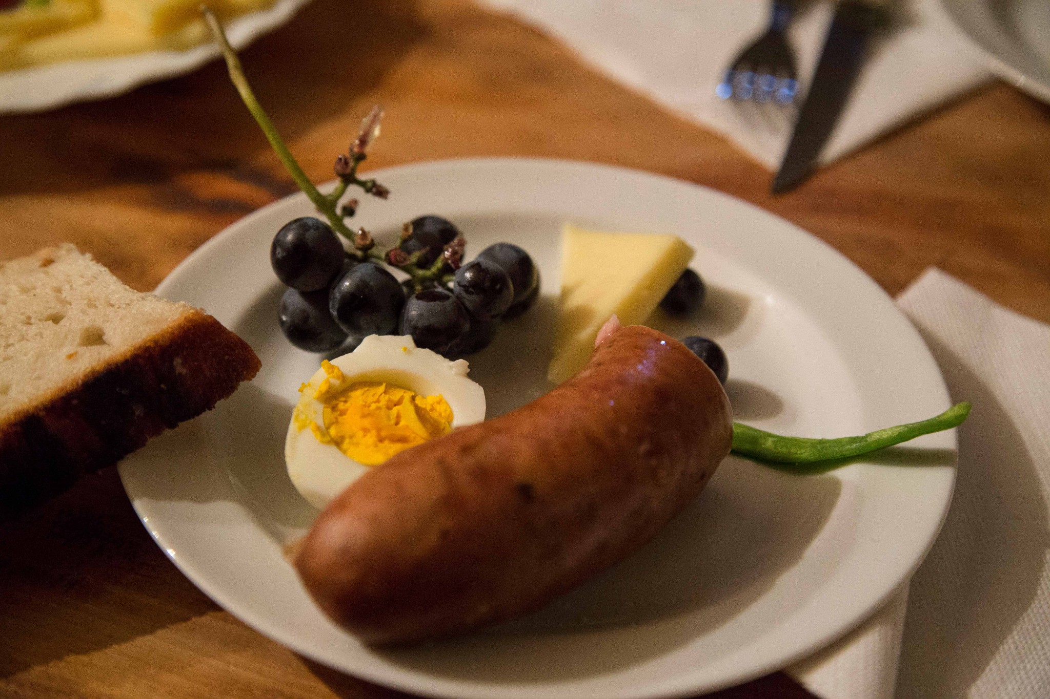 Was gehört zu einem typischen slowenischen Menü oder zur slowenischen Küche? Als Vorspeise auf jeden Fall ein Pršut. Das ist ein Schinken, der monatelange im Wind des Karst getrocknet wird. Als zweiter Gang kommt eine Suppe auf den Tipp: Eine klare Fleischbrühe, sahnige Pilzcrèmes oder deftige Eintöpfen wie Jota aus Rauchfleisch, Sauerkraut und Bohnen.